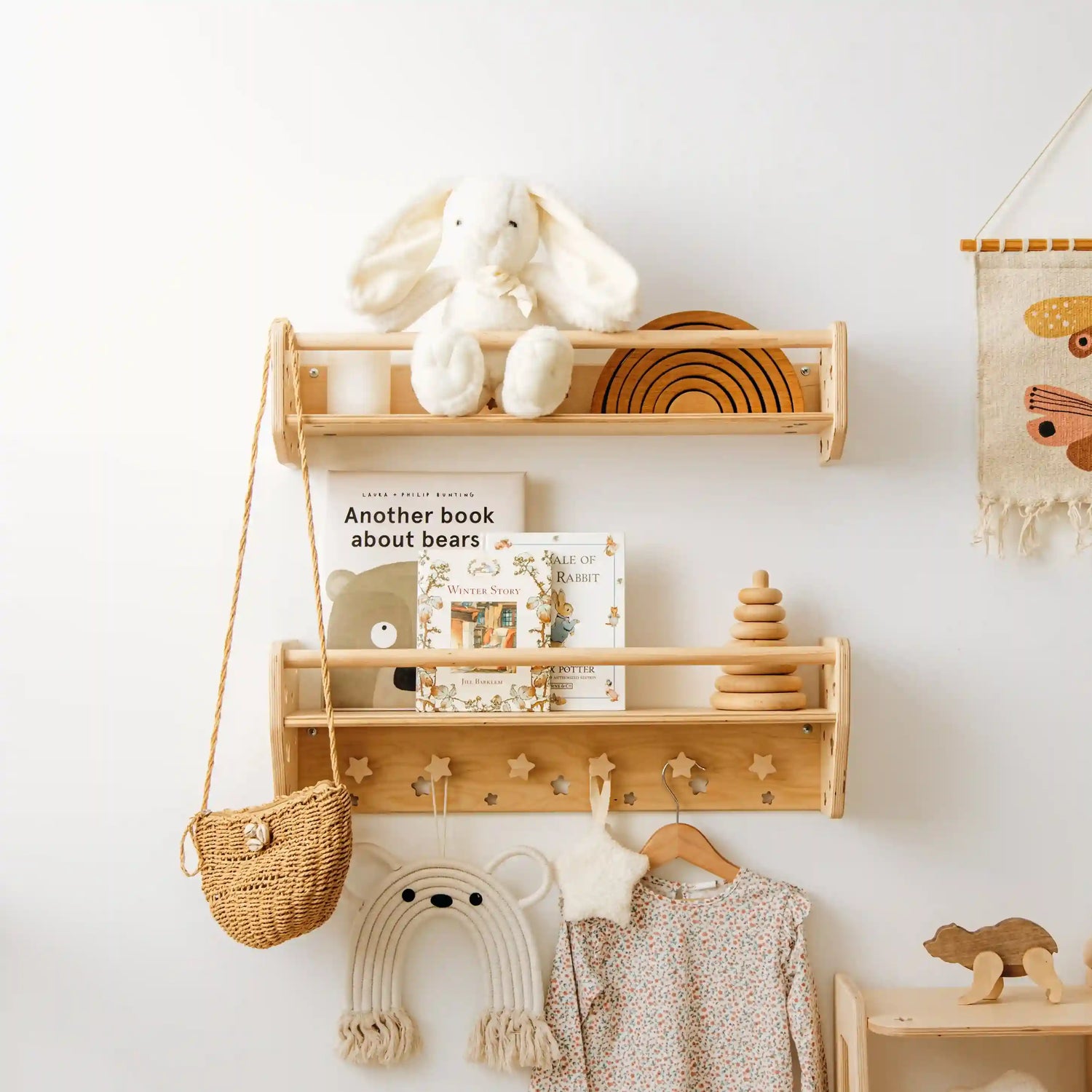 Introduce a beautifully craftedmontessori kids wardrobe & shelf set—aset of 4 shelvesperfect for a nursery or child’s room. Made from solid wood with non-toxic finishes, thiscustom wooden bookshelf & clothes rackencourages independence and organization. Ideal as akids closetorbaby room furnituregift.