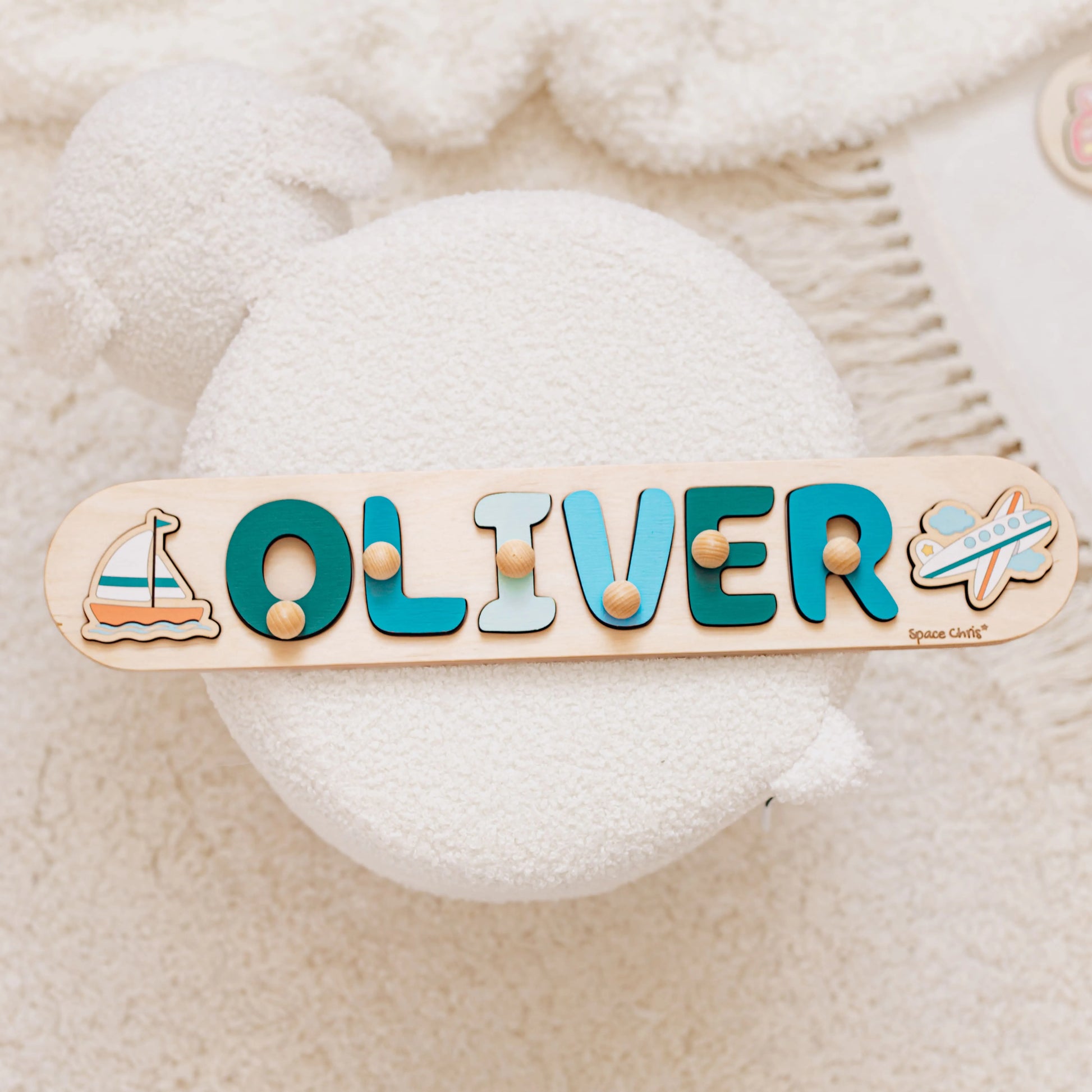Custom Montessori Wooden Name Puzzle for Toddlers – Educational Toy with Pegs