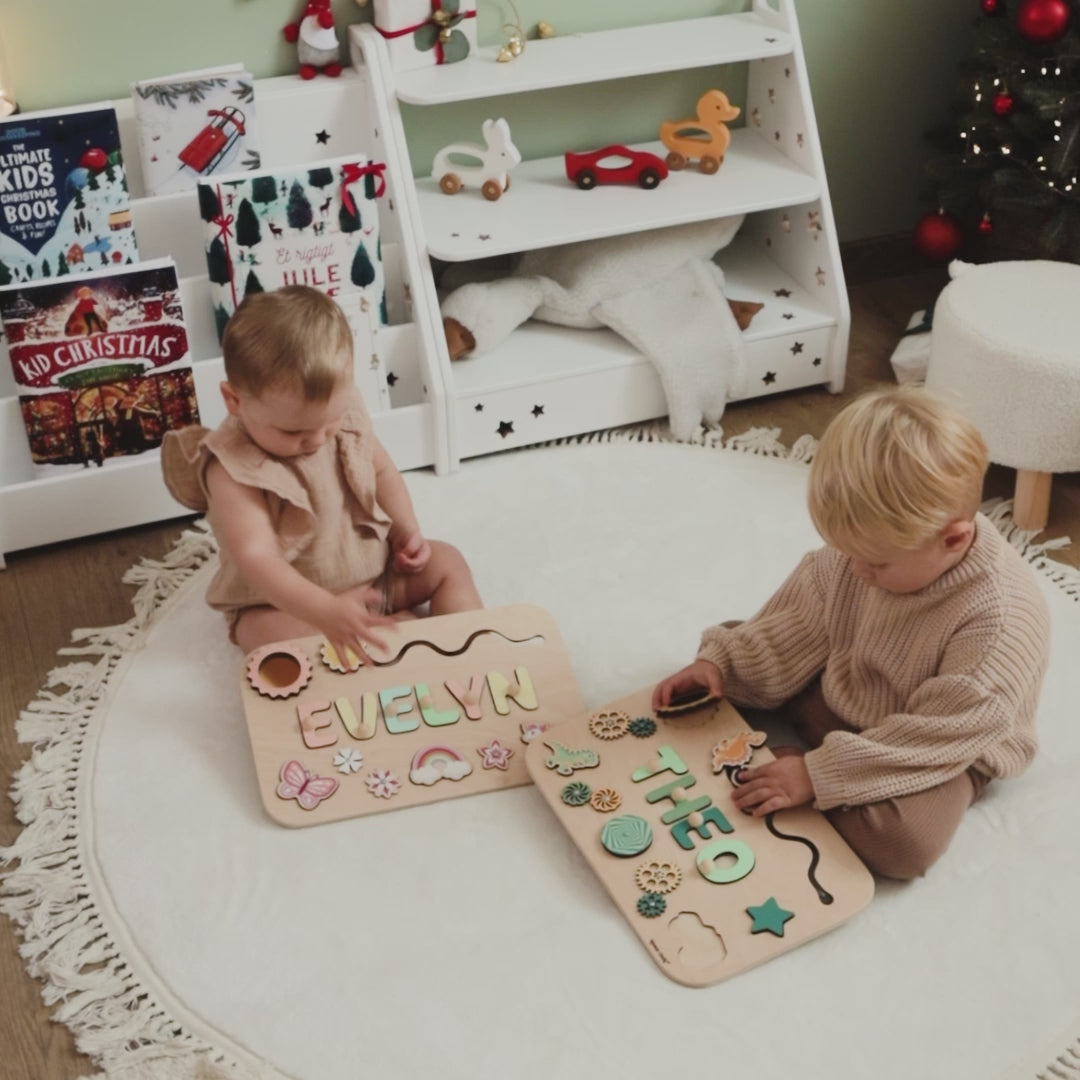 Personalized Montessori Busy Board – Wooden Sensory Toy for Toddlers | Educational Fine Motor Skills Activity Board | Montessori Gift
